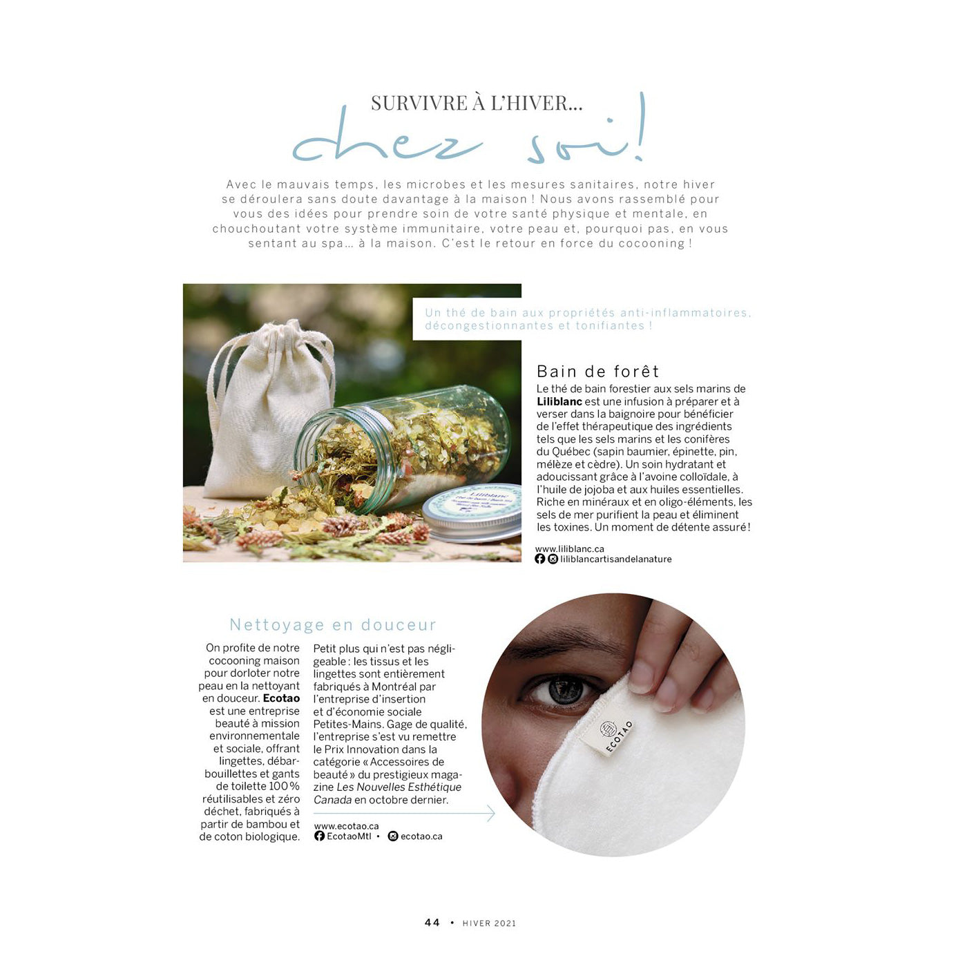 Chronique Mieux-être avec notre thé de bain forestier. Un moment de réconfortant et de détente absolue avec notre infusion de conifères du Québec, de sels marins et d'huiles essentielles.
